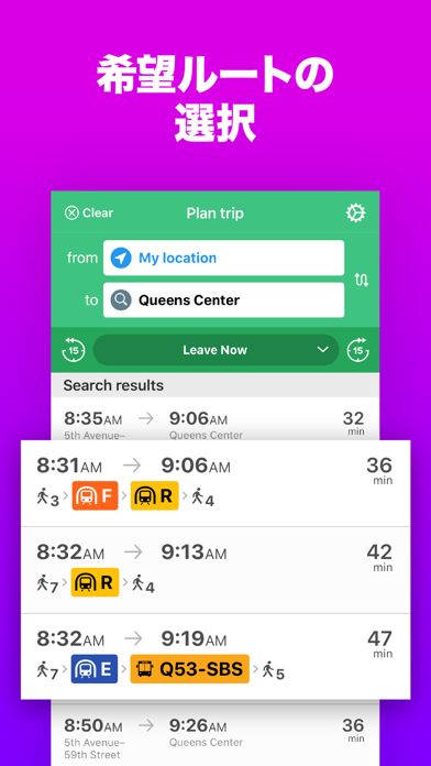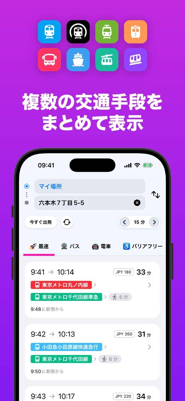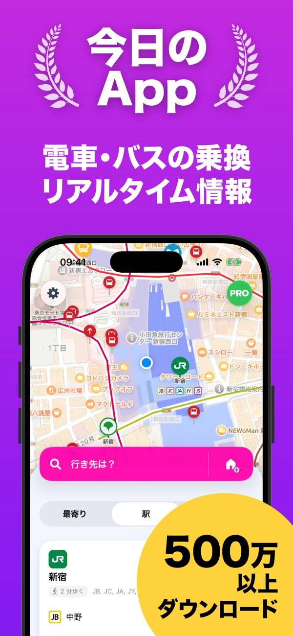 目的地までの公共交通機関を使ったルートを教えてくれるナビアプリ。ルート案内が丁寧かつ細かいので、地図を読むのが苦手な方でも迷いにくいです。