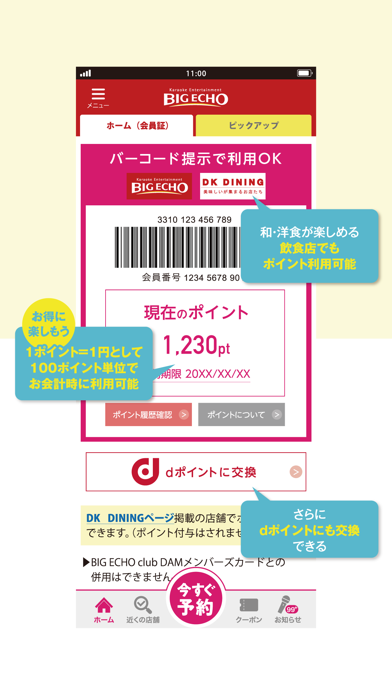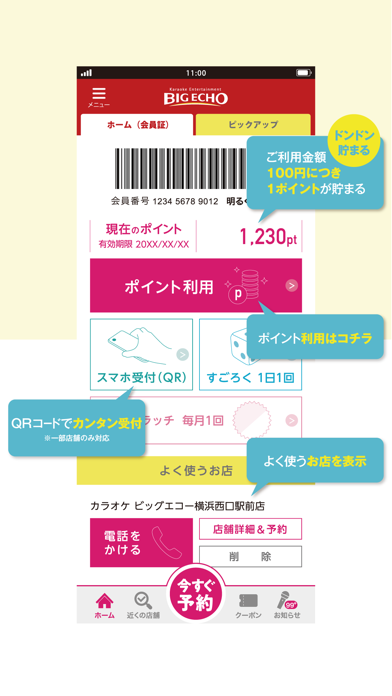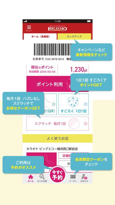 - ビッグエコー公式アプリ。会員証機能搭載でポイントを貯められる