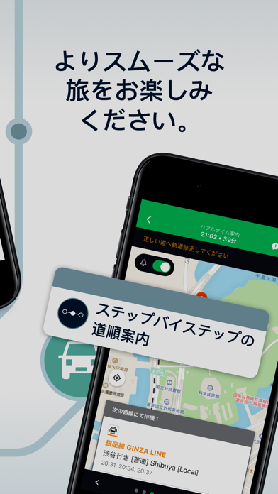 ライブガイダンス機能で、駅までの所要時間や待機時間、残りの停車駅がわかります。あと何駅で降りるかわかるので、間違った駅で降りることもなくなるでしょう。乗り換えで迷いやすい人に使ってほしい機能です。