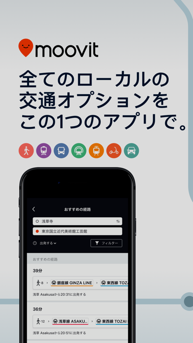 - 公共交通機関を使ったルートを表示してくれる、シンプルなナビアプリ