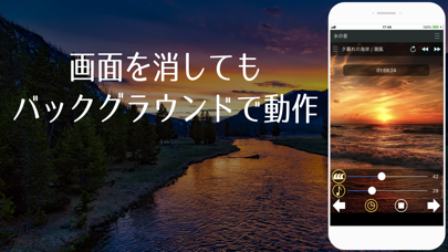 また、スリープタイマーとバックグラウンド再生に対応。アプリ画面を消したまま安心して眠りに着くことができます。