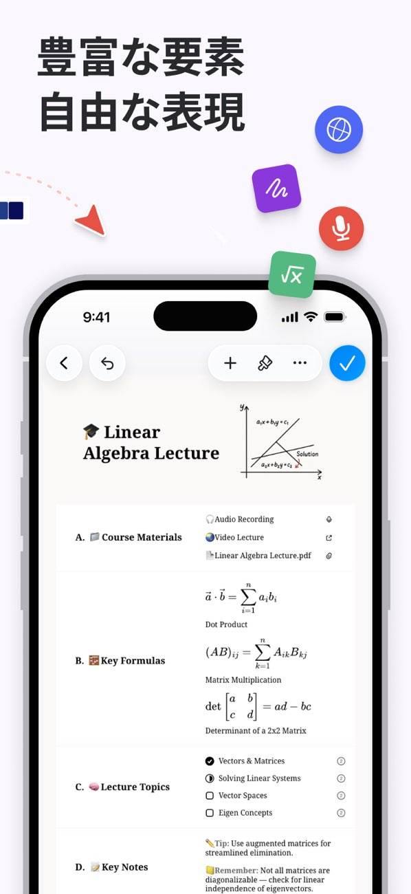 アウトライン化やタスク管理もできるので、“考える”と“動く”がつながる便利さを実感できますよ。