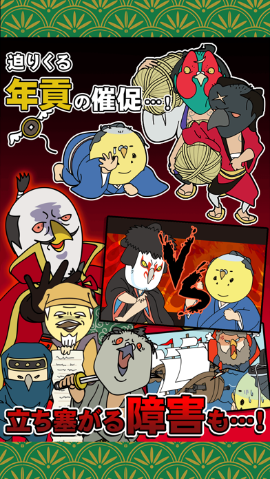 7日ごとに年貢を徴収され、払えなければ生活レベルがどんどん下がります。お金は博打で稼いだり妻子に働いてもらったり……とことんダメ男っぷりを楽しめるのが本アプリの魅力。上手くお金を稼ぎ、天下を目指しましょう。