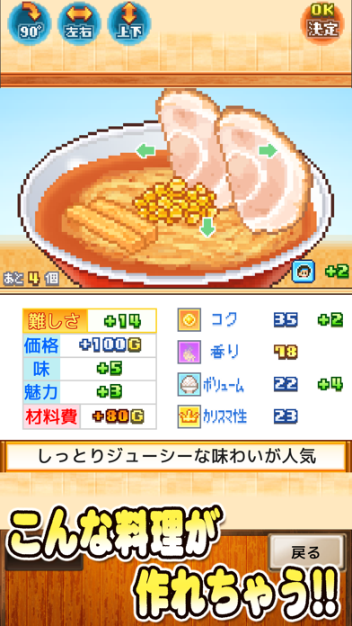 ファミコン風ですごく楽しいです。操作も簡単で色々発展できたり麺の硬さとか変えれるので楽しいです