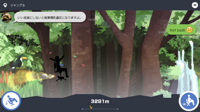 プレイ中は、上司と主人公のトークが流れます。ジャンプや着地が上手くいくと主人公が「Cool!」「Not Bad!」とプレイヤーを称賛。上司が「このままでは人事考課に影響しますよ」「どういうつもりですか?」と説得しているのにガン無視です。淡々としたやり取りがおもしろく、ずっと眺めていたくなる中毒性がありますよ。