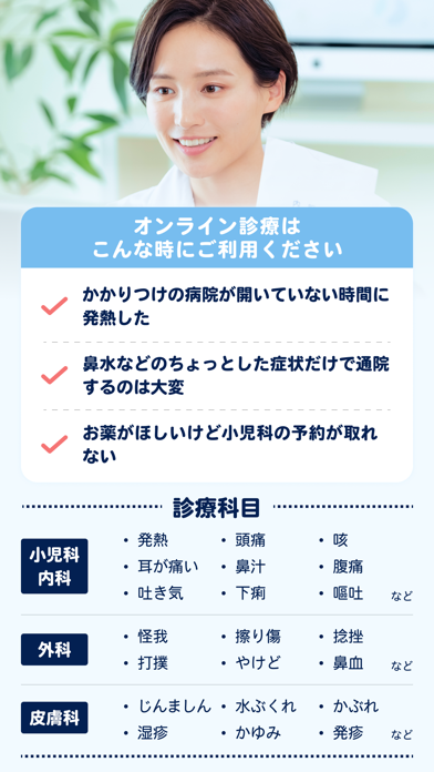 - ビデオ通話で医師とつながれるから、自宅にいながら専門的な診察が受けられる