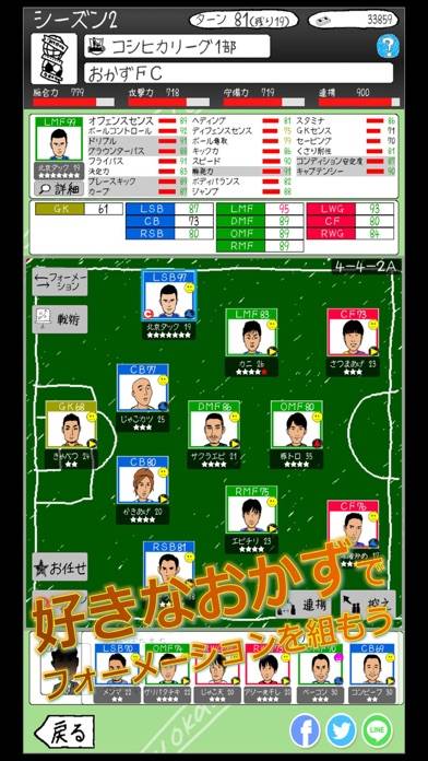 サッカーとおかずの世界が融合した、一風変わった育成シミュレーションゲーム。擬人化されたおかず選手を自由に配置し、自分だけのチームを育成します。イラストは手描きでほかのゲームと比べると雑な感じがしますが、その雑誌コラムの挿絵みたいな雑さがクセになってきますよ。