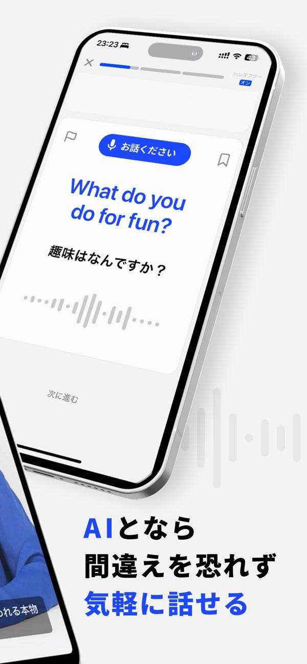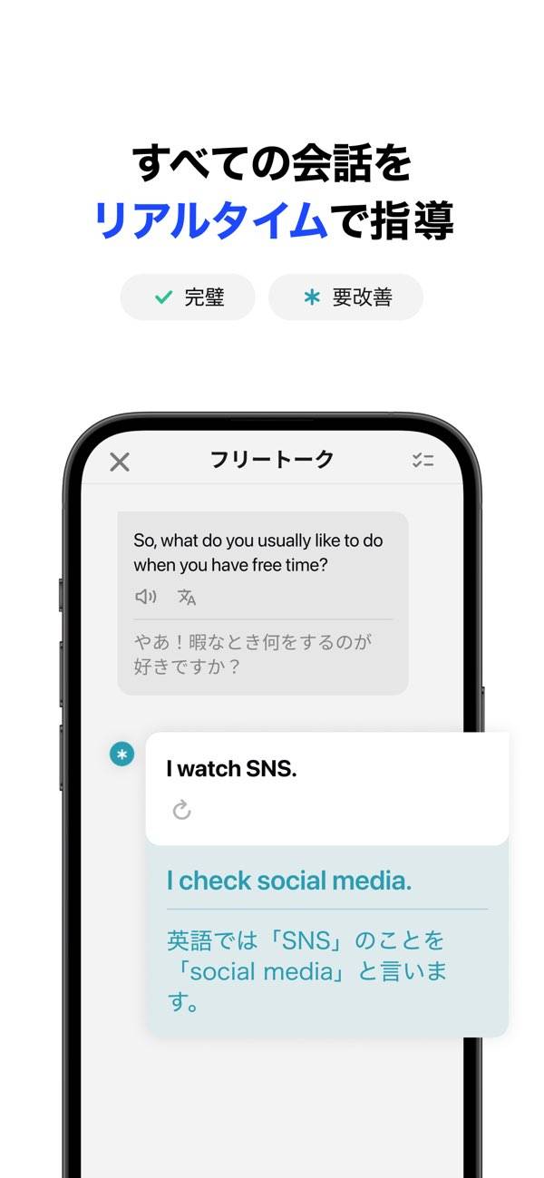- 高性能なAIが講師に。英語が苦手でも話しやすい