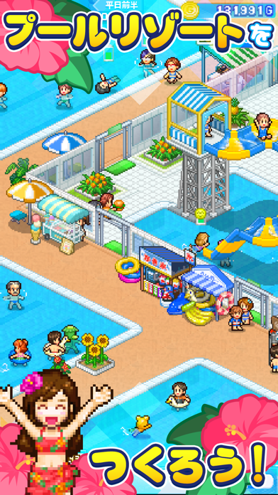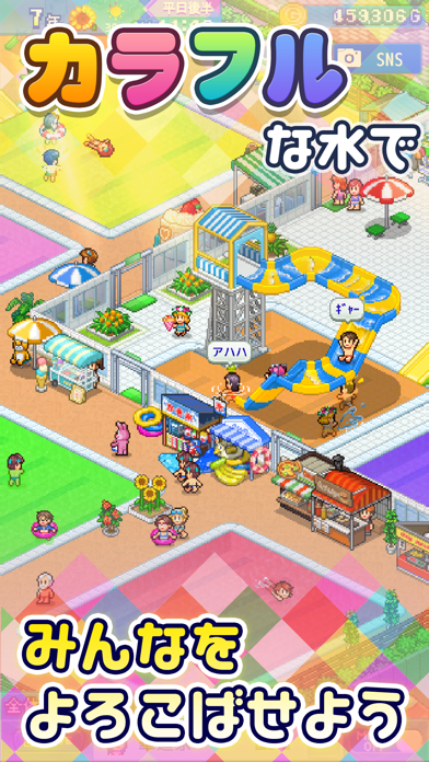 - プールの拡張やお店の設置など、思い思いのプールを経営できるSLG