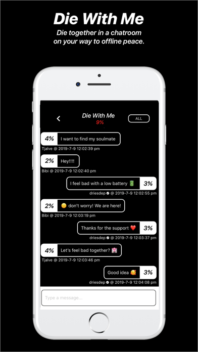 こまめに充電するのを忘れてバッテリーが切れそう……という経験をよくしている方なら、このアプリでネガティブな瞬間が楽しい瞬間に変わるのではないでしょうか。国別でサーバーを分けるようなことはされていないため日本語以外の言語も飛び交っているのですが、もうすぐバッテリーが切れる……ああ……という切ない雰囲気はひしひしと伝わってきます。