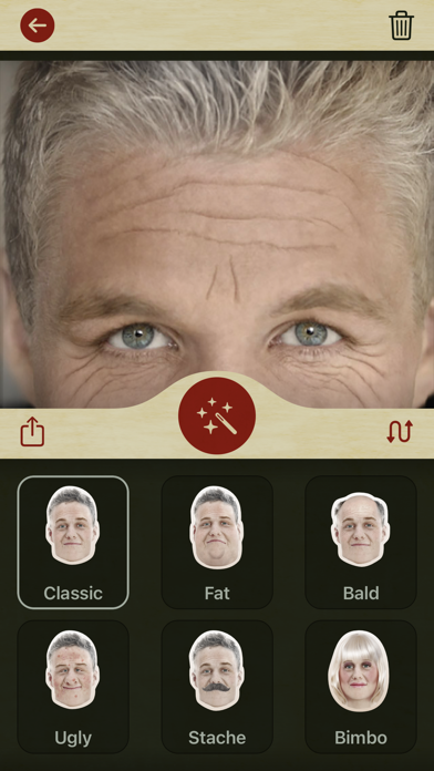 - 撮った写真ですぐに老け顔が完成。操作もとってもシンプル