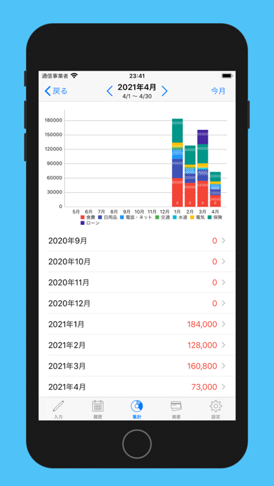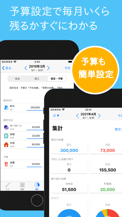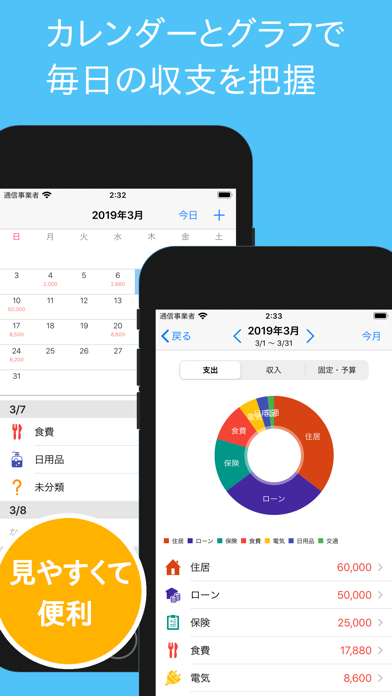 - カレンダーとグラフで、ひと目で収支がチェックできる