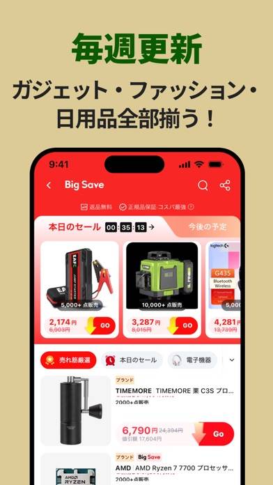 ガジェットから生活雑貨まで、驚きの価格が魅力です。日本の一般的な通販サイトと比べて、似た商品が半額以下で購入できることも珍しくありません。定期的に開催されるビッグセールでは、リーズナブルな商品がさらに最大80%オフになることも。