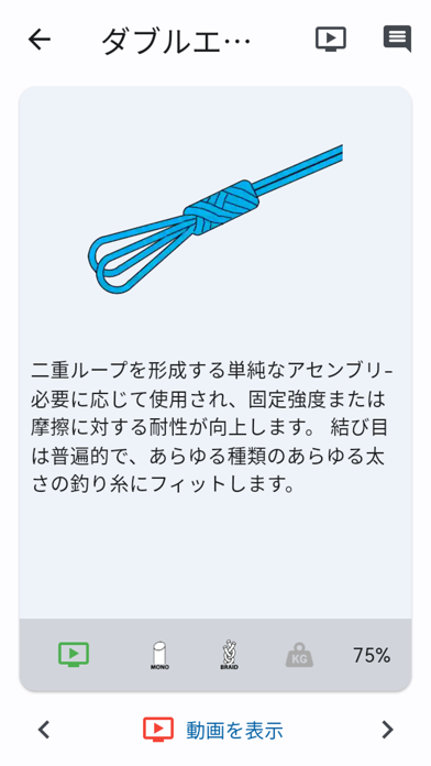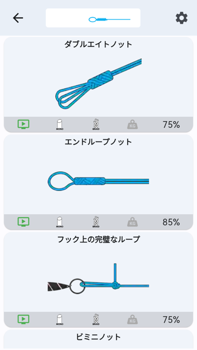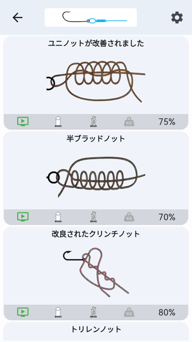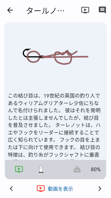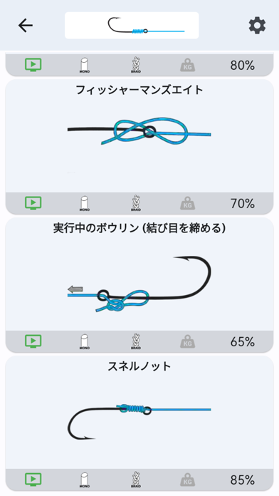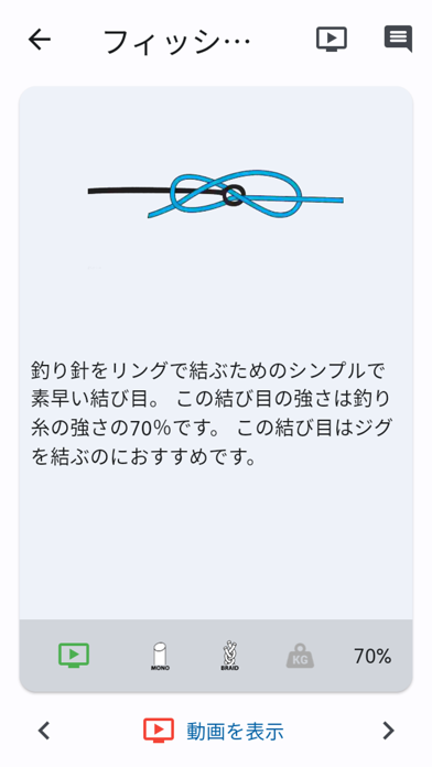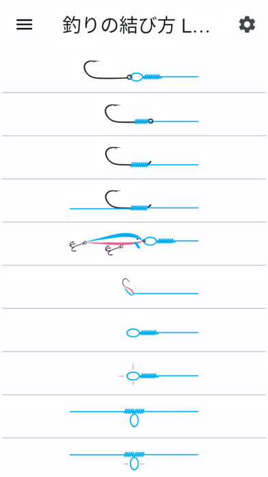 釣りに役立つ糸の結び方を一覧で見られるアプリ。