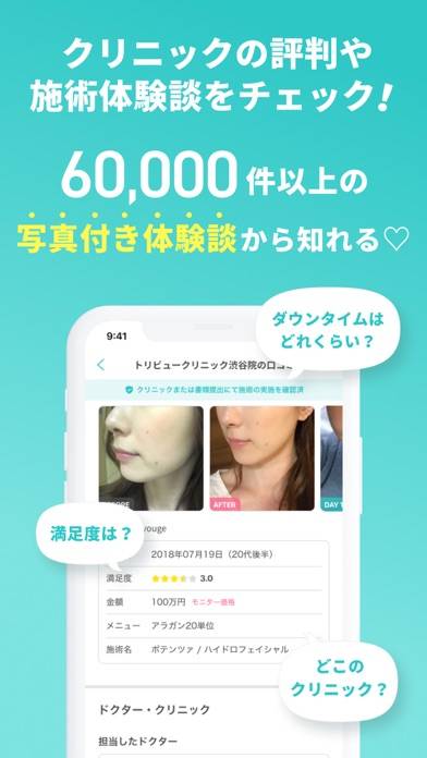 - 美容整形の経過写真、体験談、Q&Aなどが見られる口コミアプリ