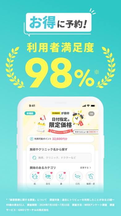 口コミが豊富な美容医療予約アプリ。シミや美白など、自分が気になっていることや地域を選択するだけでそれに適したクリニックを推薦してくれます。イベントやキャンペーンも豊富で、お得に美容医療を受けられるチャンス。