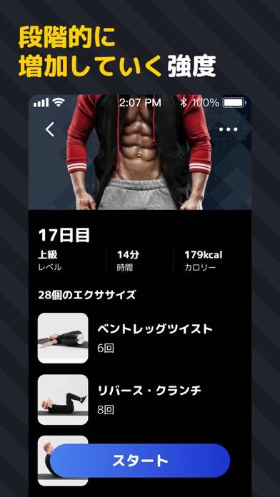 - 豊富なトレーニングメニューで腹筋を割る。やり方は動画で確認可能