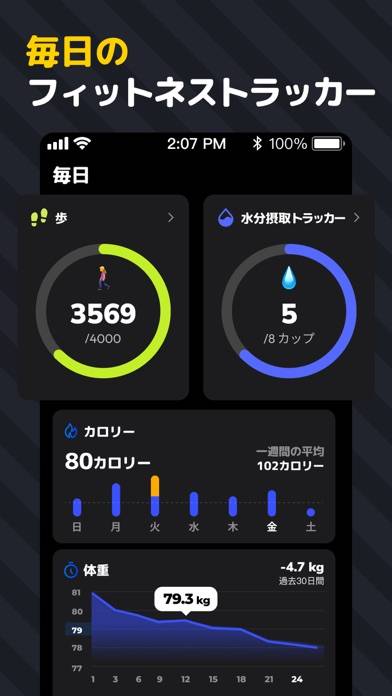 トレーニングの記録が自動で集計されていきます。ワークアウト数や消費カロリー、体重の推移など、ボディメイクに欠かせない記録を一画面で確認可能。モチベーションアップにも役立ちます。