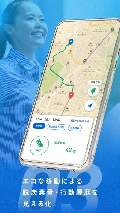 歩いたり自転車に乗ったりすることでCO2排出量を抑制し、それをポイントに変換。運動量をひと目で把握できる機能も搭載しており、健康的な行動がエコ活動とつながる新感覚の体験が可能です。健康維持を目指す方や環境に配慮したライフスタイルを送りたい方におすすめです。