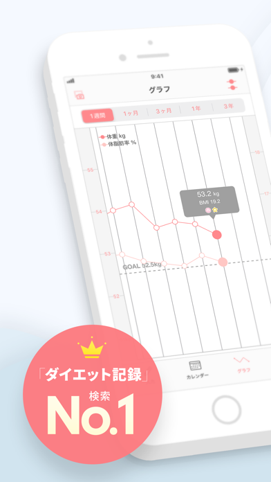 - 1日1回体重を記録するだけ。手軽なダイエットサポートアプリ
