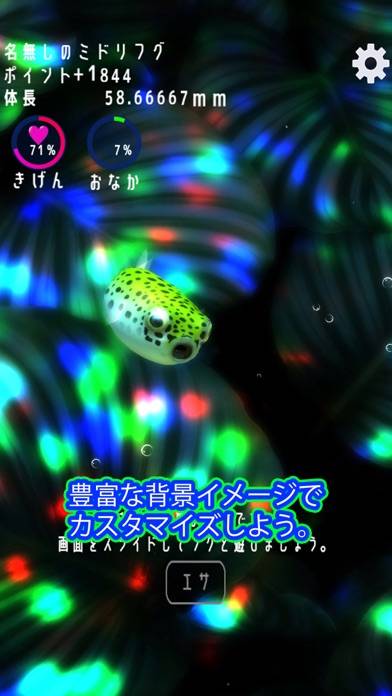 3日に1回のお世話をするだけで、フグは少しずつ成長していきます。仕事や勉強で忙しく、なかなか長時間ゲームで遊べない人におすすめ。ちょっとしたスキマ時間にお世話できます。