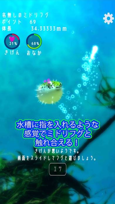 膨らむ姿がかわいい。ミドリフグを世話する育成ゲーム
