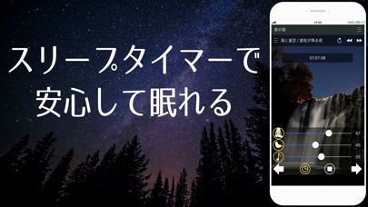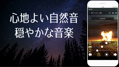 - 雷や鳥の声、それぞれの音量を調整して自分好みに
