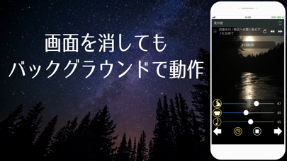 また、スリープタイマーとバックグラウンド再生に対応。アプリ画面を消したまま安心して眠りに着くことができます。