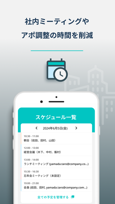 人と会議室の空き状況から最適な時間を自動で提案してくれます。各々がOutlookに予定を入れておくだけでOK。ミーティングやアポ調整の時間を大幅に削減できます。