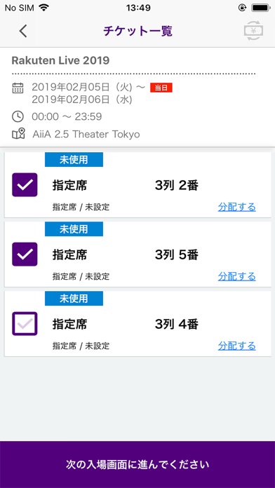 - 楽天で買ったチケットをアプリ上で受け取り、会場で見せてチケットレス