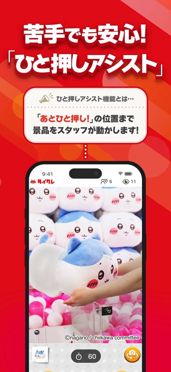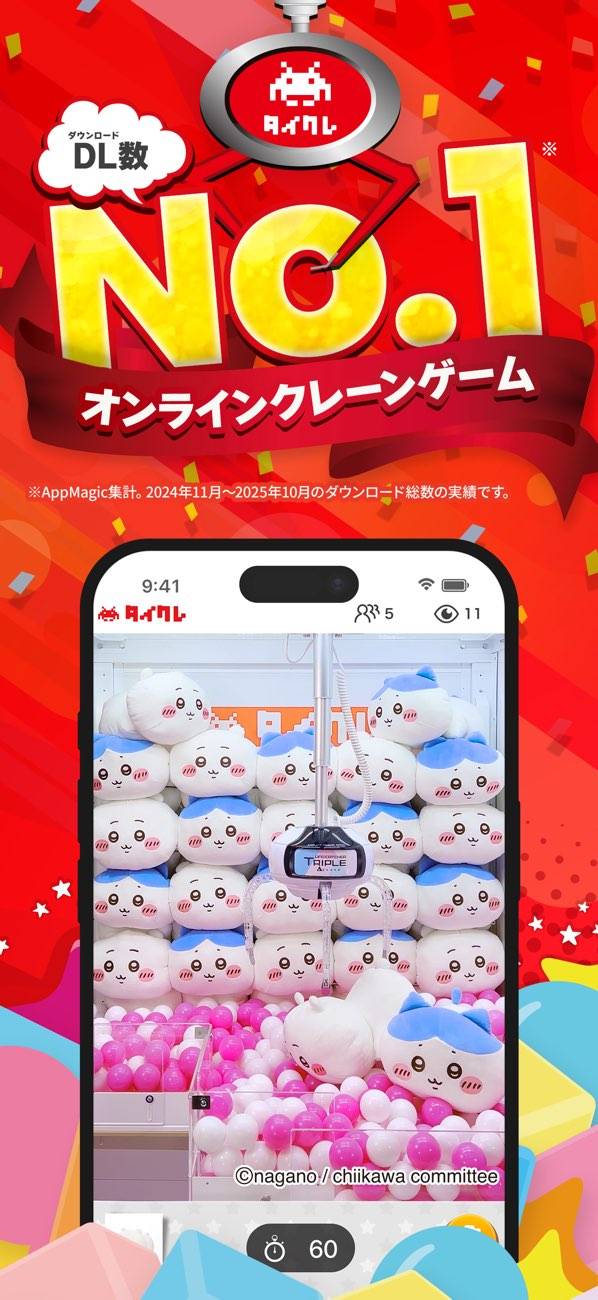 ゲーム開発とゲームセンター運営の老舗メーカー「タイトー」の、オンラインクレーンゲーム。時間内ならクレーンを何度でも動かせる親切設計なのがうれしいところ。また無料でコインが手に入るオファーも多くあり、ゲームセンターよりもお得に遊べます。