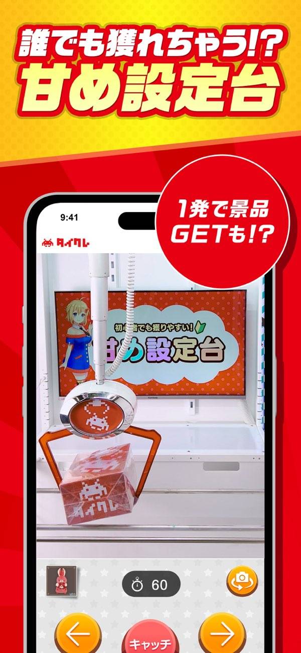 タイトーのクレーンゲームアプリだから、タイトーの景品が揃ってます(*^^*)中々出歩けない人にはとっても嬉しいアプリです。上手い人ならゲーセン行くより安く取れるんじゃないでしょうか。キープ機能がないのが痛いけど、家で遊べるのが良いから多少は我慢です(^_^;)景品の種類が増えるといいな!