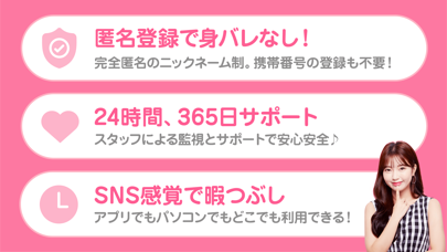 アダルトな行為や性的な表現、買春・売春、違法画像の交換などは禁止されています。もし違反行為が発覚した場合、すぐに削除。場合によってはアカウント停止です。このような厳しい環境が整っているので、安全で健全なコミュニケーションを行えるでしょう。