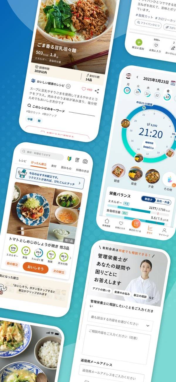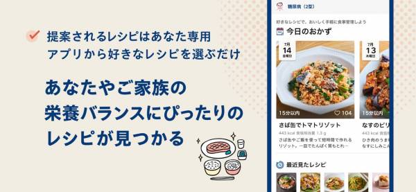 健康維持や病気の予防に役立つレシピが豊富に見られる食事管理アプリ。体重や身長、体調などの簡単な質問から、あなたにぴったりのレシピをAIが提案してくれます。医師や管理栄養士がわかりやすく解説している、最新の医療情報も見逃せません。