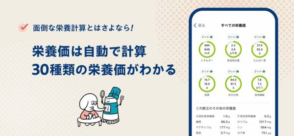 - 面倒な栄養計算が不要に! 買い物リストも自動で生成してくれる