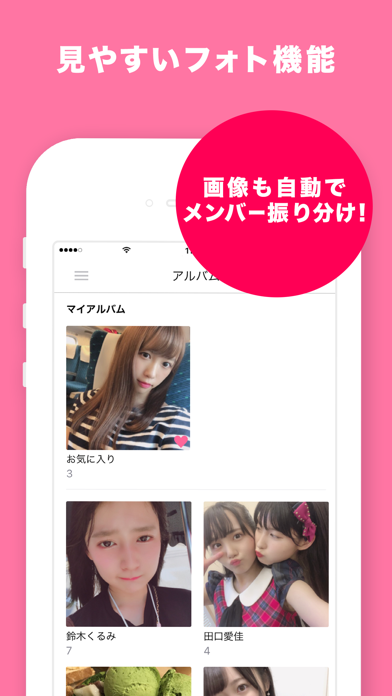 AKB48のメンバーからあなただけの特別なメッセージを受け取れます。月額登録は少々割高な印象ですが、アイドルから笑顔の自撮りフォトが届くと考えるとアプリを使ってみたくなります。メンバーごとに自動でフォトが分けられるので、推しメンの画像も探しやすいでしょう。