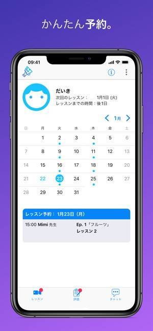アプリを開くだけでレッスン準備は完了。曜日と時間を最初に決めれば予約の手間もありません。