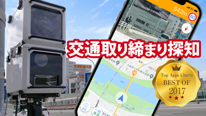 速度違反を取り締まる装置オービスが近づくと警告してくれるアプリ。地図上でオービスの位置が確認できるので、あとどれくらいの距離なのかがはっきりわかります。本アプリを使って速度違反に注意しながら安全運転を心がけましょう。
