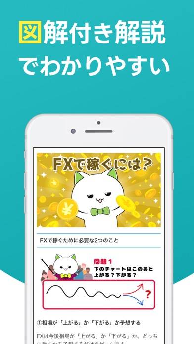 FX取引の知識がつけられるアプリ。FX特有の難しい用語を、イラストやマンガ形式でわかりやすく解説。投資って難しそう……などの漠然とした不安を抱えている初心者にぴったりです。