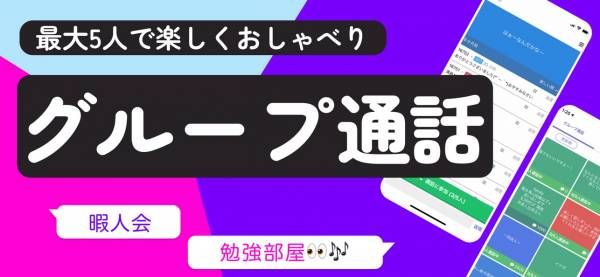 「相手を探す」をタップすると、ランダムにユーザーとつながります。オンラインのユーザーが自動的に選ばれるため、暇つぶし相手を探す手間いらず。チャットには定型文などが用意されており、手軽なコミュニケーションが可能。チャットだけでなく通話もできます。
