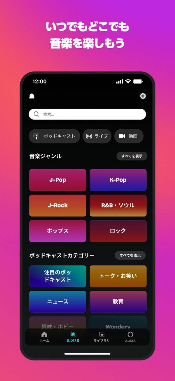 毎日更新されるプレイリストや人気のポッドキャストが勢ぞろい。