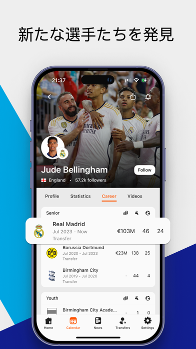 チームや選手をフォローでき、トップ画面に試合の出場予定を表示できます。プッシュ通知機能もあり、お気に入りの選手やチームの見せ場を見逃しません。フォローしていないチームの試合予定も、カレンダーから確認できます。