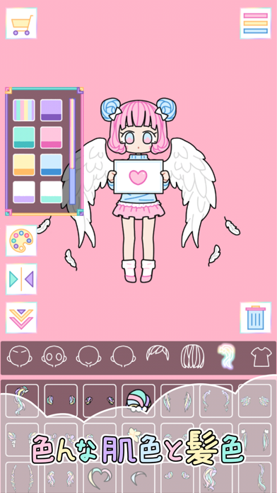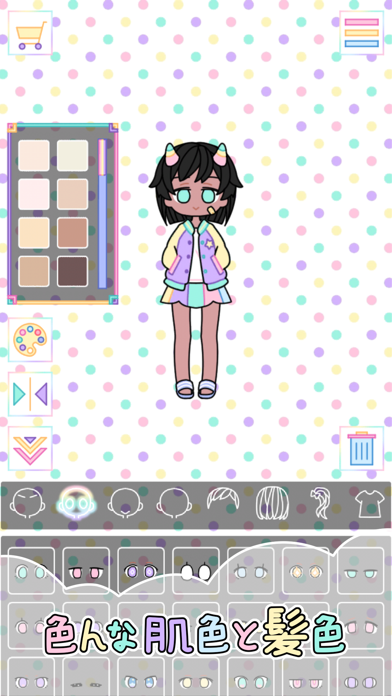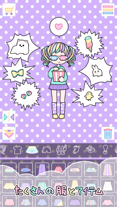 キャラクターの服や髪型を自由に変えられる着せ替えアプリ。パステルカラーの色調が特徴的で、選べるファッションもふわっとしたかわいらしいものが多め。いわゆる「ゆめかわ」系のキャラクターを作るのにはぴったりでしょう。