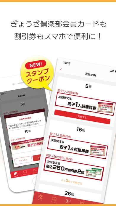 また、ぎょうざ倶楽部の会員カードをアプリに登録することが可能です。これにより、スタンプをアプリ上で貯めることが可能になり、完全カードレスで利用できるようになります。会計時に財布から会員カードを出す煩わしさから、解放されるのは嬉しいですね。