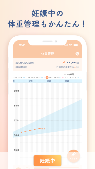 妊娠のスタート日を入力するだけで、現在の週数がわかります。週数に合わせて、コラムやお買物リストを表示。この先どういう変化が起こるかもわかり、初めての妊娠でも不安を最小限にとどめられます。