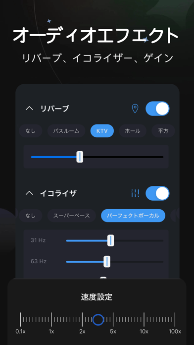 - 多彩な効果音の挿入や、音域のブーストといった調整も加えられる