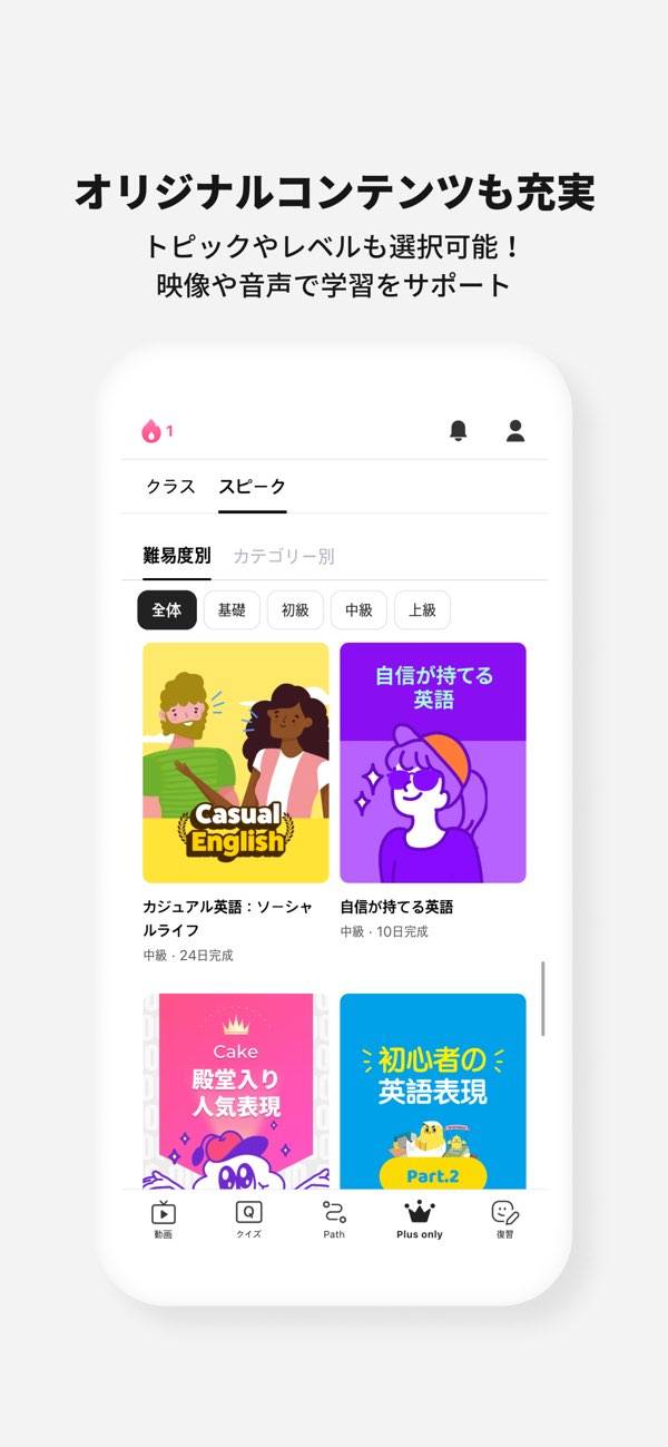 cakeは日常会話のフレーズを覚えるのに便利だと思います。第二言語の覚え方についての本を見ていると、人はフレーズを状況やシチュエーション人との関係性の中で記憶すると書かれていたため、このアプリを利用することにしました。使い方としては、短いドラマ映像をそのまま記憶して似たようなシチュエーションで暗記したフレーズをそのままトレースしたりして使っています。難点は映像の種類が少ないところですが、映像の補助があった方が良い人はお勧めです。