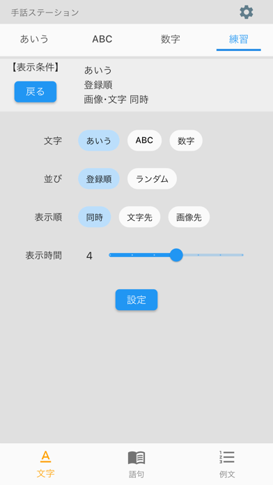 指文字と語句合わせて約4,500語をアニメ動画で表示。再生中に途中で一時停止や巻き戻しができ、くり返し見ながら動きをじっくり確認できます。表示サイズが大きめで、細かい手の動きまでしっかりチェック可能。動画速度の調整や左右反転もできるので、自分の手と見比べながら練習できます。