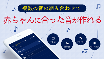 赤ちゃんのぐずりや夜泣きを落ち着かせてくれるサウンド再生アプリです。テレビのノイズや川のせせらぎなど身近な音を再生することで、赤ちゃんを安心させます。タイマー機能や音の組み合わせができ、使い方次第で育児の役に立つかもしれません。