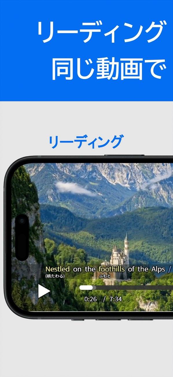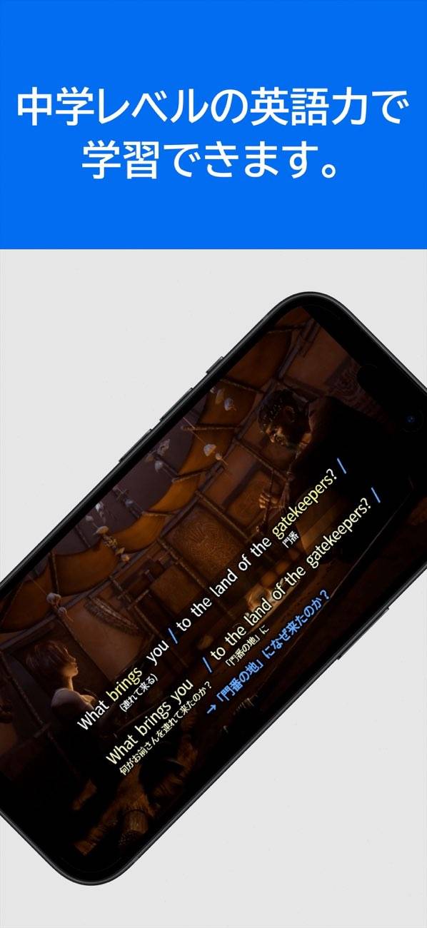 動画を再生して、音声とテロップで英語を学べる学習アプリ。実用性のある英語や文法を、より意味を把握しやすい形で勉強できるのが大きな強み。またテロップには訳の表示や重要語句の強調がされ、的確にポイントを押さえられます。